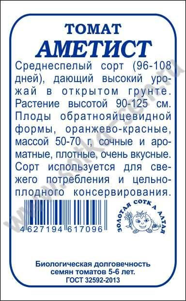 Среднеспелый сорт, дающий высокий урожай плодов отличного качества в открытом грунте. От всходов до созревания 96-108 дней. Растение высотой около 125 см. Плоды обратнояйцевидной формы, оранжево-красные, массой 50-70 г, сочные и ароматные, плотные, хорошо транспортируются и обладают высокими вкусовыми качествами. Сорт используется для непосредственного потребления, приготовления салатов и соков, консервирования и переработки на томатопродукты.