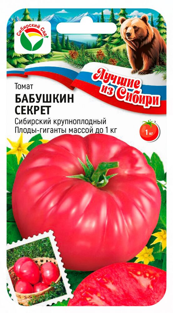 Среднеспелый сибирский крупноплодный сорт для теплиц и пленочных укрытий. От всходов до начала созревания 105–110 дней. Приятный сюрприз для садоводов — сладкие мясистые плоды весом до 1 кг. Растение высотой 150-190см, индетерминантного типа, требует формирования куста и подвязки. Плоды плоскоокруглые, розово-малинового цвета, малосемянные, отличных вкусовых качеств. Прекрасно подходят для потребления в свежем виде и зимних заготовок. Посев на рассаду производят за 50-60 дней до высадки растений на постоянное место. Урожайность до 5 6кг с растения. Для получения наиболее крупных плодов требуется своевременное пасынкование. Сорт хорошо реагирует на полив и подкормки комплексными минеральными удобрениями.
