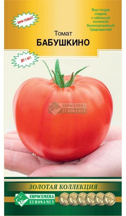 Сорт среднеранний, индетерминантный, относится к типу биф-томатов. От посева семян до сбора первого урожая 105- 115 дней. Растение высотой около 1,8 метра, при формировании в 2-3 стебля. Первая цветочная кисть образуется над 9 листом, последующие через 2-3 листа. Томат очень урожайный. Плоды, массой 400-600 г, максимальный вес может достигать 1 кг. При наливе плодов необходима подвязка кистей, чтобы предотвратить их заламывание. Форма плодов плоскоокруглая, насыщенно-красного цвета с розоватым оттенком, слаборебристая. Вкус сладкий, с небольшой кислинкой, ароматный и очень приятной консистенции. Перезревшие томаты иногда растрескиваются, но не теряют своих вкусовых качеств. Сорт пригоден для изготовления соков, пюре, томатной пасты. Сорт устойчив к основным заболеваниям томатов. Плотность посадки 4 растения/м2. Урожайность 18-22 кг/м2.