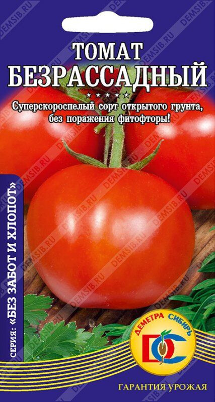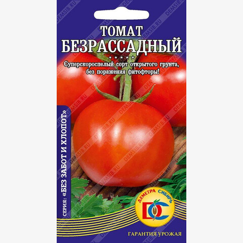 Раннеспелый (78-83 дня) сорт. Растение детерминантное, не требует пасынкования и подвязки. Плоды плоско - округлые, гладкие, красные, сочные, сладкие, массой до 100 гр. Сорт неприхотлив в выращивании. Благодаря скороспелости, не поражается фитофторой.