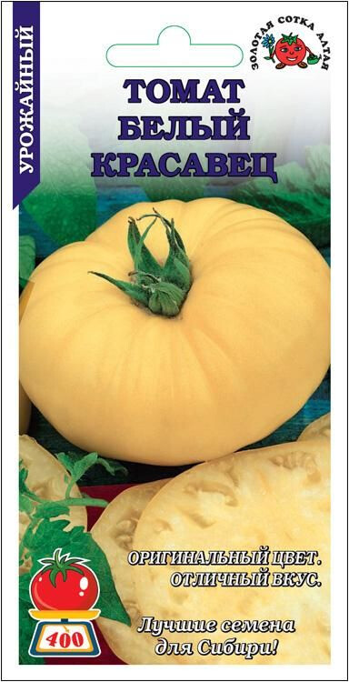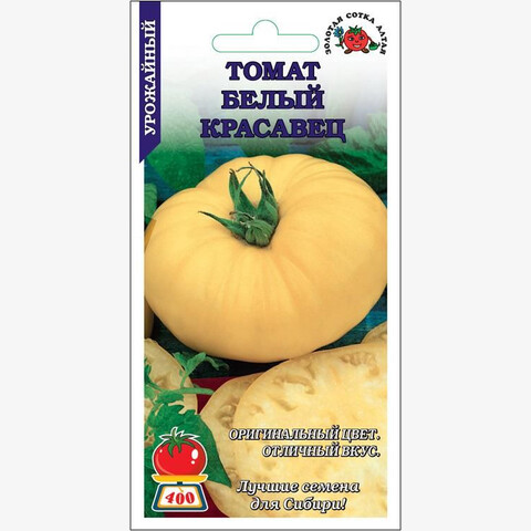 Среднеспелый экзотический сорт с оригинальными белыми плодами, рекомендованный для теплиц и открытого грунта. Куст индетерминантный, требует подвязки к опоре и пасынкования, наилучшие результаты дает при формировании в 1 или 2 стебля. Плоды плоскоокруглой формы, средней плотности, в стадии зрелости светло-кремового цвета, массой 250-400 г, мясистые, хорошего вкуса со сладостью, не пресные. К осени цвет плодов меняется с кремового на молочно-белый — это выглядит очень необычно и придает кустам декоративный вид. Сорт используется для свежего потребления, приготовления сока и переработки на томатопродукты.