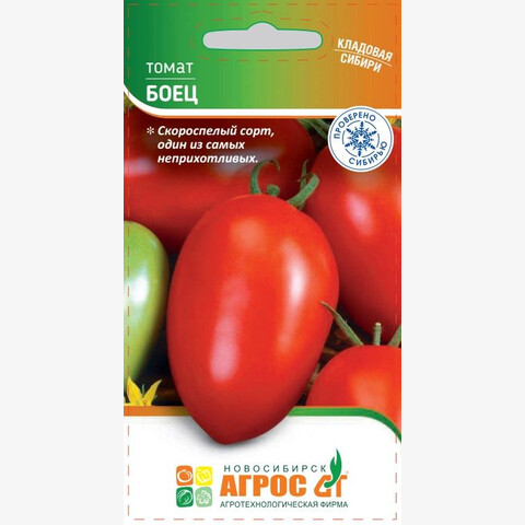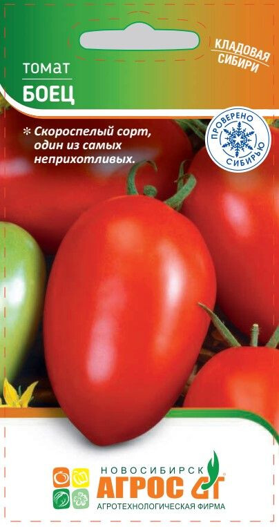 Скороспелый сорт, один из самых неприхотливых. Куст штамбовый, низкий. Плоды овально-удлиненной формы, крупные (первые плоды до 180 г), универсального использования. Достоинства сорта: скороспелость, высокая урожайность, в рассаде не вытягивается. Рекомендуется для выращивания в открытом грунте. БОЕЦ хорош для приготовления свежих салатов и переработки.