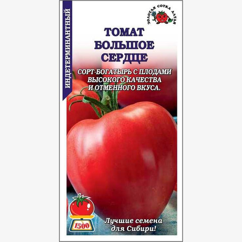 Среднеспелый невероятно урожайный сорт для открытого и защищенного грунта. Растение мощное, индетерминантное, требует формирования и подвязки. Плоды округло-сердцевидной формы, красные, очень крупные, массой 400-500 г(до 1,3-1,5 кг). Мякоть сахаристая, малосемянная, мясистая, великолепного вкуса. Сорт используется в кулинарии, для непосредственного потребления, приготовления салатов и консервирования, прекрасно подходит для переработки на соки, кетчупы и пасты.