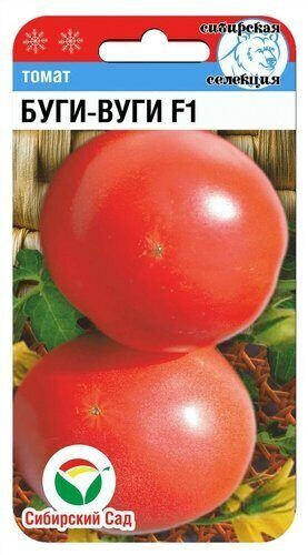 Гибрид Буги-вуги F1 представлен в серии Новые авторские гибриды российских селекционеров". Томаты этой серии обладают высокой урожайностью, великолепными товарными качествами, комплексной устойчивостью к заболеваниям и, самое главное, сохраняют замечательный томатный вкус и запах, в отличии от многих зарубежных аналогов Раннеспелый розовоплодный гибрид. Созревание плодов через 100-103 дня после появления всходов. Растение высотой до 130 см. Плоды плоскоокруглые, гладкие, плотные, равномерной розовой окраски без зеленого пятна у плодоножки, массой до 300 грамм, прекрасных вкусовых качеств и с хорошей транспортабельностью. Гибрид устойчив к вирусу табачной мозаики, фузариозу, мучнистой росе. Предназначен для выращивания в теплицах любых типов. Урожайность до 15 кг с 1 кв. м.