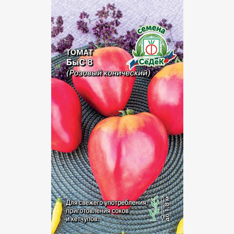 Среднеранний (105-115 дней) сорт салатного назначения для парников и теплиц. Растение индетерминантное, высотой до 1,8 м. Наилучшие результаты по урожайности можно получить при формировании в два стебля. В кисти до 5 плодов. Плоды в форме сердца, очень привлекательные, слегка ребристые, массой 350-500 г. Цвет ярко-розовый. Мякоть мясистая, нежная, сахаристая. Вкус отличный. Ценность сорта: стабильно высокая урожайность, крупноплодность, отличные вкусовые качества. Подходит для свежего употребления, приготовления соков и кетчупов.
