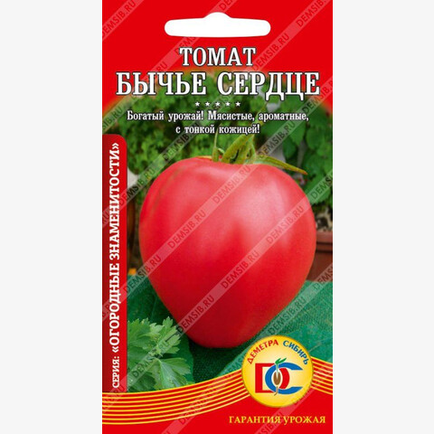 Очень популярный среднеспелый высокоурожайный сорт. Рекомендован для выращивания в открытом грунте и пленочных теплицах. Куст индетерминантный, высотой до 1,5м. Плоды сердцевидные, розово-красные, мясистые, с малым количеством семян, сладкие, мясистые, массой 300-400г. Использование универсальное.