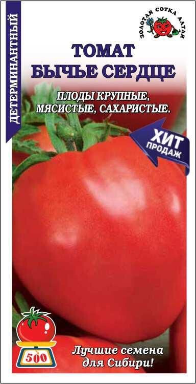 • Один из наиболее популярных среднеспелых сортов. Растение детерминантное, требует подвязки и формирования. Плоды красные, сердцевидной формы, крупные, массой до 300-500 г, мясистые, сахаристые, очень вкусные. Сорт используется для приготовления салатов и соков, подходит для переработки и консервирования.