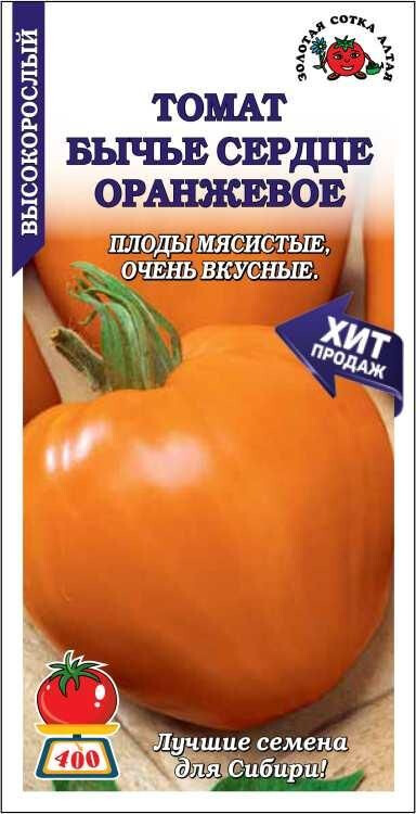 Среднеспелый высокоурожайный сорт. От всходов до начала созревания 110-120 дней. Растение высокорослое, требует подвязки и формирования. Плоды красивой ярко-оранжевой окраски, сердцевидной формы, крупные, массой до300-400 г, мясистые, очень вкусные. Наилучшим образом подходят для приготовления салатов и зимних заготовок.