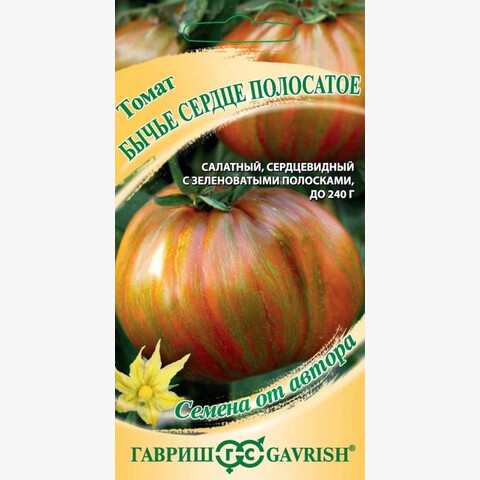 Крупноплодный сорт выделяется из линейки «бычьих сердец» оригинальной окраской, обладает приятным вкусом — сладость и нежное фруктовое послевкусие. Плодоношение начинается через 115-120 дней от всходов. Растение среднерослое, продуктивное рекомендуется для теплиц и временных пленочных укрытий. Плоды бордово-коричневого цвета с зелеными полосами от округло-сердцевидной до округлой формы, массой 140-180г (до 240г) хороши для употребления в свежем виде, нарезок, салатов и переработки. Посев на рассаду проводят в начале марта. Пикировка в фазе первого настоящего листа. Высадка рассады в парники/ теплицы — в конце мая начале июня по схеме 40х60 см. Обязательна подвязка растений через несколько дней после высадки. Семена сохраняют всхожесть в течение 10 лет при оптимальных условиях хранения. Рекомендуется увеличить норму высева по окончании срока годности. Подходит для промышленного круглогодичного выращивания с использованием светокультуры в защищенном грунте.