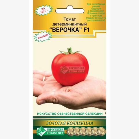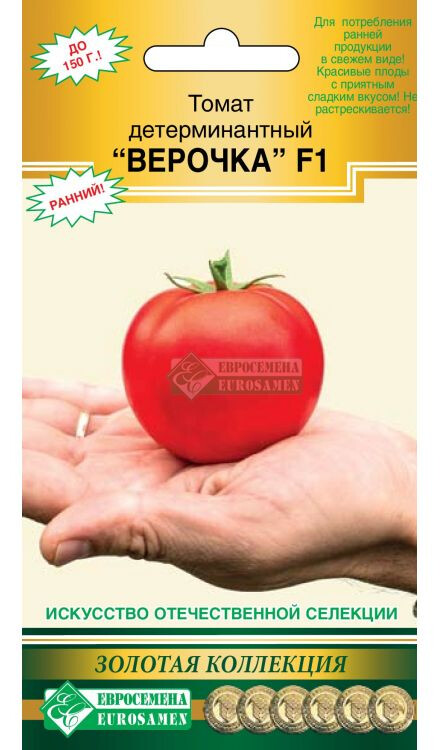 Гибрид раннеспелый, детерминантный, высотой до 1 м. От всходов до первого сбора урожая 85-90 дней. Первое соцветие закладывается над 6- 7 листом, последующие через 2. Соцветия полусложные. В соплодии, как правило, развивается около 5-и полноценных плодов. Плоды 4-5-ти камерные, с хорошими пропорциями семенных камер и толщины стенок, округлой формы, слегка граненые у плодоножки, фактура напоминает нежные детские щёчки. Томаты густо-красного цвета, очень красивые, кожица тонкая, прочная, блестящая. Масса плодов от 110 до 150 г. Вкус приятный, сладкий, с небольшой кислинкой, очень хороший для скороспелых томатов. Томаты пригодны, как для потребления ранней продукции в свежем виде, так и для приготовления консервов и соков. Гибрид устойчив к растрескиванию и вершинной гнили плодов, толерантен к вирусу томатной мозаики, альтернариозу и фитофторозу. Плотность посадки 4-5 растений/м2. Урожайность около 5 кг с куста.