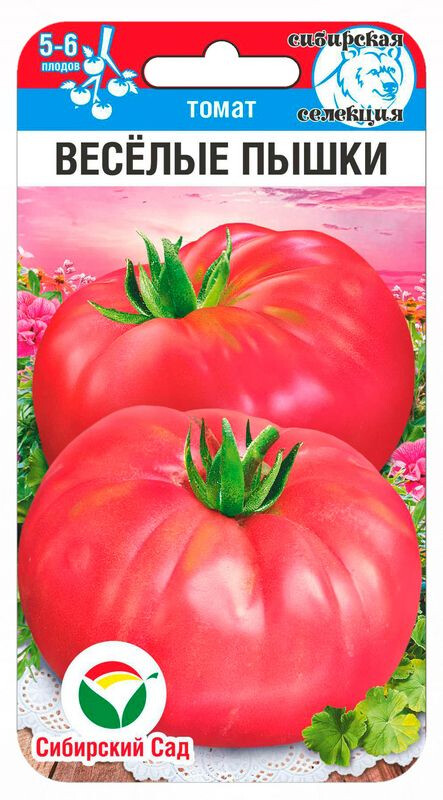 Раннеспелый (100-105 дней) обильно-урожайный сорт с розово-малиновыми плодами отличных вкусовых качеств. Выровненные, плоско-округлые гладкие плоды весом 150-250 грамм, похожи на розовые пышечки, идеальны для свежего потребления и бочкового засола. Сорт отличается обильной завязываемостью и надежной урожайностью. Неоднократно проверен в условиях сибирского лета, каждый год плодоносит до заморозков. Выращивается в защищенном и открытом грунте. Куст детерминантный, малооблиственный, высотой 1-1,7м (в зависимости от условий выращивания), с картофельным типом листа. Формирует обильные красивые розово-малиновые кисти с 5-6 плодами. Мякоть розовая, с малым количеством семян, превосходного вкуса. Плоды идеальны для свежих салатов, приготовления соков, соусов, пюре и для любителей крупноплодного засола. Сорт достаточно устойчив к основным заболеваниям. Урожайность до 12 кг/м2.