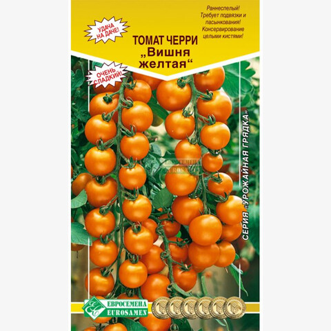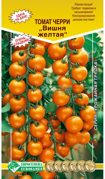 Раннеспелый (92-96 дней от всходов до плодоношения) высокорослый (более 200 см) сорт для выращивания в пленочных теплицах и открытом грунте (с подвязкой к кольям). Рекомендуется для использования в свежем виде и консервировании целыми кистями. После высадки растение формируют в один стебель, удаляя все пасынки и прищипывая растения над 3-4 кистью. Плоды округлой формы, желтого цвета, массой 15-20 г. Особую декоративность растениям придает длинная кисть с 20-40 плодами, которые имеют превосходный, сладкий вкус. Плоды томатов богаты витаминами, содержат фолиевую кислоту, каротин, провитамин Д и оказывают положительное воздействие на организм.