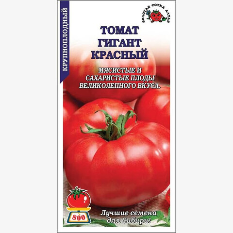 Крупноплодный урожайный сорт среднего срока созревания для выращивания в открытом грунте и пленочных теплицах. Растение высокорослое, требует пасынкования и подвязки. Плоды красные, плоскоокруглой формы, крупные и очень крупные, массой 400-800 г, сочные, мясистые и сахаристые, великолепного вкуса. Сорт рекомендуется для непосредственного потребления и приготовления салатов, консервирования и переработки.