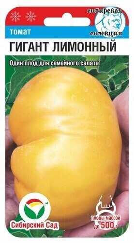 Среднеспелый крупноплодный сорт для теплиц и открытого грунта. От всходов до плодоношения 110-120 дней. Высота растения в теплице может достигать 2-2,5 м, в открытом грунте около 1,5 м. Самые крупные плоды при выращивании в теплице достигают 900 грамм, в открытом грунте 400-500 грамм, при этом урожайность гораздо выше. Первая кисть закладывается над 7-9 листом. В кисти формируется 2-3 крупных и 1-2 более мелких томатов. Плоды ярко-желтого цвета, приплюснуто - округлой формы, мясистые и сладкие. Люди с тонким обонянием заметят присутствие легкого лимонного аромата. Сорт используется для летних салатов и домашней кулинарии. Ценится за крупноплодность и высокие вкусовые качества плодов. Урожайность до 5 кг с растения.