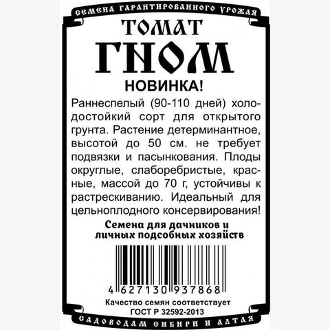 Новинка! Раннеспелый (90-110 дней) холодостойкий сорт для открытого грунта. Растение детерминантное, высотой до 50 см. не требует подвязки и пасынкования. Плоды округлые, слаборебристые, красные, массой до 70 г, устойчивы к растрескиванию. Идеальный для цельноплодного консервирования!