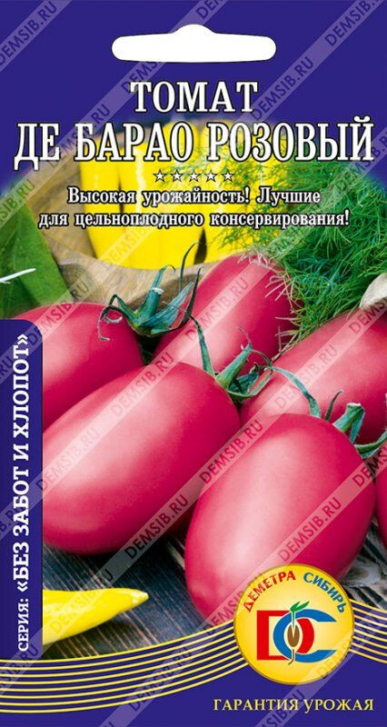 Позднеспелый (117 дней) высокоурожайный сорт для защищенного грунта. Растение индетерминантное. Плоды сливовидные, гладкие, розовые, массой 50- 70г. Ценится за обильное плодоношение (с начала августа до заморозков), теневыносливость, устойчивость к болезням. Рекомендуется для самых вкусных салатов и цельноплодного консервирования