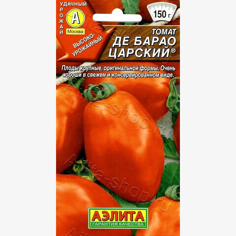 Томат Де Барао Царский — это высокорослый сорт томата, который идеально подходит для выращивания в открытом грунте и теплицах. Высота растения может достигать 2 метров, поэтому рекомендуется подвязывать его к опоре. Плоды томата имеют цилиндрическую форму и насыщенный красный цвет. Они обладают отличным вкусом и ароматом, что делает их идеальными для употребления в свежем виде, а также для приготовления салатов, соусов и консервирования. Сорт Де Барао Царский отличается высокой урожайностью и устойчивостью к болезням. Плоды созревают дружно, что позволяет собрать богатый урожай за один раз. Томат хорошо переносит транспортировку и длительное хранение, сохраняя при этом свои вкусовые качества. Семена томата Де Барао Царский от компании Аэлита — это гарантия качества и надежности. Компания Аэлита специализируется на производстве семян овощных культур и имеет многолетний опыт в этой области. Семена упакованы в удобную упаковку, которая защищает их от влаги и повреждений. Выращивание томата Де Барао Царский не требует особых навыков и знаний. Достаточно соблюдать основные правила агротехники: регулярный полив, подкормка и защита от вредителей. Сорт подходит как для опытных огородников, так и для начинающих. Томат Де Барао Царский — это отличный выбор для тех, кто хочет получить богатый урожай вкусных и ароматных томатов. Попробуйте вырастить этот сорт у себя на участке и убедитесь в его преимуществах!