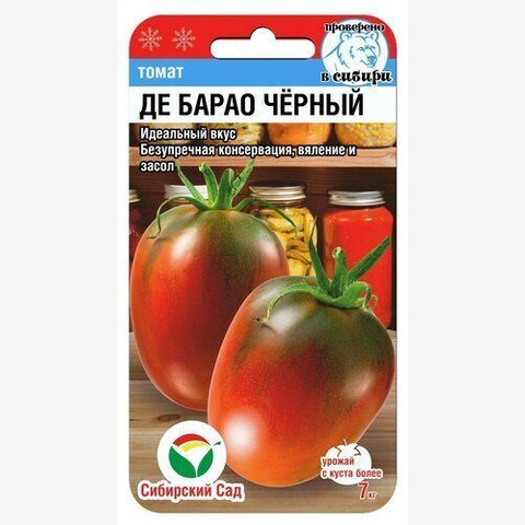 Позднеспелый индетерминантный сорт, способный отдать до полутора ведер отличных засолочных плодов с одного растения. Рекомендуется для выращивания в защищенном грунте. Куст высокорослый, сильноветвистый, до 3 м в высоту. В одном соцветии может образовываться до 12 цветков. Плоды яйцевидной формы, весом не более 60 г, красно-коричневого цвета с черным оттенком. Грозди плотных выровненных плодов отличаются не только необычным внешним видом, но и превосходным вкусом. В них содержится большее количество сахара, чем в других разновидностях сорта Де Барао.