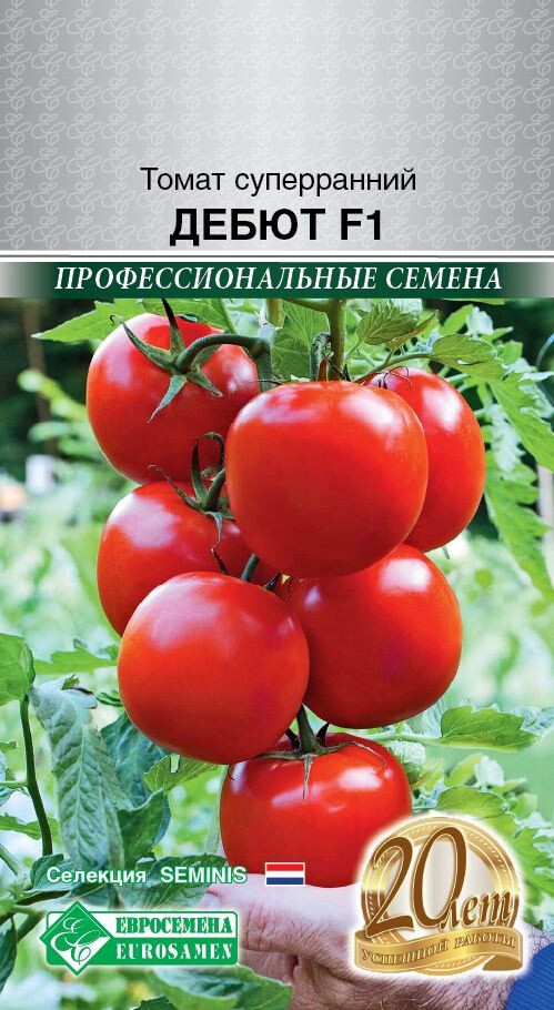 Сегодня сложно найти рецепт первых и вторых блюд, в которые не добавлялись бы томаты. Мы добавляем свежие, протёртые или вяленые помидоры в супы — для насыщенности, в гарниры кладём их, чтобы сделать вкус более многогранным и интересным, а к мясу — чтобы оно стало более сочным и нежным. Помидоры используют даже в выпечке и десертах. Помидоры — важный для человека с биохимической точки зрения продукт. Дебют- очень ранний детерминантный гибрид томата для потребления в свежем виде и переработку на томатопрродукты. Рекомендуется выращивать в открытом грунте. Созревает через 57-60 дней после высадки в грунт. Плоды крупные, массой 200-220 грамм, число гнезд -6, гладкие, округлой формы. Окраска зрелых плодов ярко-красного цвета, мякоть красная, сладкая. Гибрид устойчив к комплексу заболеваний.
