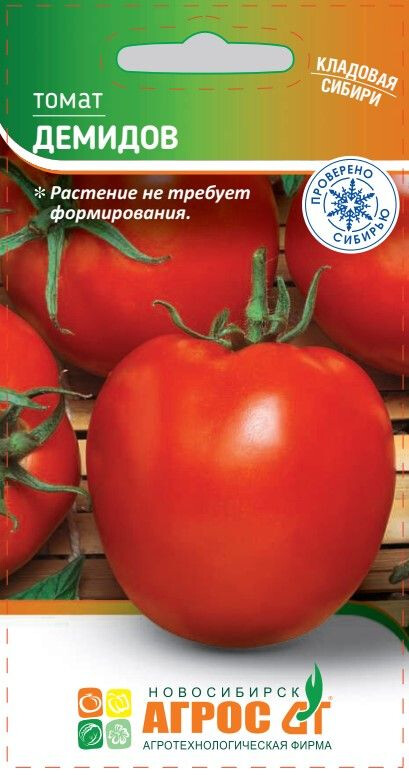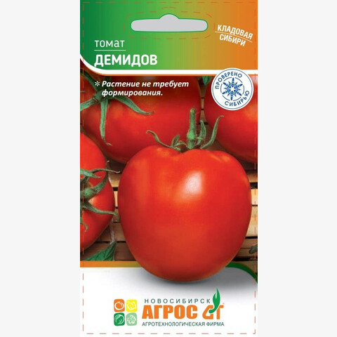 Среднеспелый сорт. Куст штамбовый, компактный с темно-зелеными картофельными листьями. Плоды округлой формы, плотные, массой 100-120 г, розово-красного цвета. В основании плода - характерное зеленое пятно, исчезающее при созревании. Томаты сорта ДЕМИДОВ обладают хорошими вкусовыми качествами, используются в свежем виде и для консервирования.
