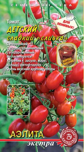 Томат Детский сладкий сливка от Аэлита Экстра – это идеальный выбор для тех, кто ценит сладкий вкус и нежную мякоть. Этот сорт томатов отличается высокой урожайностью и ранним созреванием, что позволяет наслаждаться свежими плодами уже в начале сезона. Плоды имеют форму сливок, что делает их не только вкусными, но и привлекательными внешне. Они идеально подходят для употребления в свежем виде, а также для приготовления салатов и соусов. Томат Детский сладкий сливка обладает устойчивостью к различным заболеваниям, что делает его выращивание простым и необременительным. Семена упакованы в удобную упаковку, что обеспечивает их сохранность и удобство использования. Этот сорт томатов станет отличным дополнением к вашему огороду и порадует вас обильным урожаем.