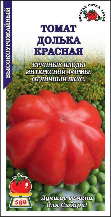 Скороспелый высокоурожайный сорт с интересными плодами. Растение сильнооблиственное, индетерминантное, требует подвязки и пасынкования. Плоды крупные, массой до 350-500 г и более, округло-плоской формы с сильно выраженным разделением на дольки, ярко-красные, не растрескиваются. Мякоть с малым количеством семян, сочная и мясистая, отличного вкуса. Сорт рекомендуется для свежего потребления, переработки и консервирования.
