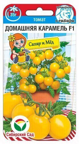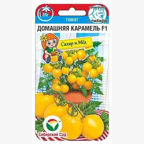 Очень ранний гибрид (88-90 дней) черри-томатов для выращивания на домашних подоконниках, балконах и миксбордерах на садовых участках. Ценится за высокую декоративность, отличную урожайность, легкость выращивания и сладкий вкус плодов. Растение карликовое, высотой 20-25см. Густо усыпано золотистыми плодами, собранными в красивые обильные кисти. Томаты массой 30-35г, округлые, выровненные, с гладкой блестящей кожицей ярко-желтого цвета. Вкус мякоти приятный, карамельно-сладкий. Плоды не растрескиваются, походят для свежего употребления и цельноплодного консервирования. Гибрид устойчив к основным заболеваниям пасленовых культур. Урожайность до 1,5кг с растения.