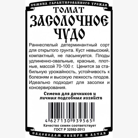 Раннеспелый детерминантный сорт для открытого грунта. Куст невысокий, компактный, не пасынкуется. Плоды удлиненно-овальные, красные, плотные, массой 70-100г. Ценится за стабильную урожайность, устойчивость к болезням и высокую лежкость плодов. Идеально подходит засолки и цельноплодного консервирования.
