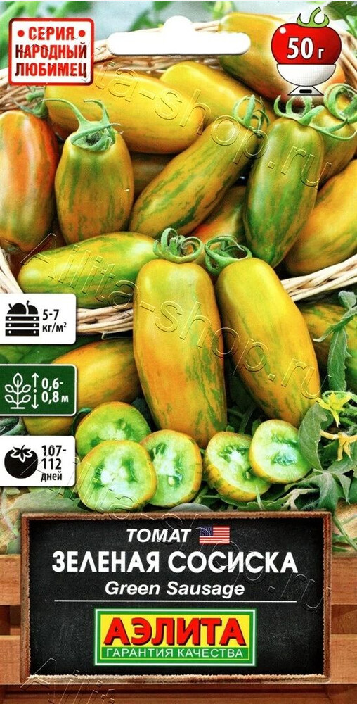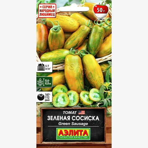 Томат Зеленая сосиска от компании Аэлита — это уникальный сорт, который порадует вас своим необычным внешним видом и вкусовыми качествами. Плоды этого томата имеют вытянутую форму, напоминающую зеленую сосиску, отсюда и название сорта. Они обладают насыщенным зеленым цветом и приятным кисло-сладким вкусом. Этот сорт томата идеально подходит для выращивания в открытом грунте и теплицах. Растения отличаются высокой урожайностью и устойчивостью к болезням. Плоды созревают равномерно, что позволяет собирать урожай в течение всего сезона. Томат Зеленая сосиска отлично подходит для употребления в свежем виде, а также для приготовления различных блюд. Его можно добавлять в салаты, закуски, соусы и даже использовать для консервирования. Этот сорт томата станет отличным дополнением к вашему огороду и порадует вас своим урожаем.