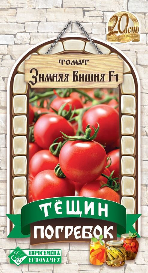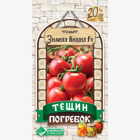 Заготовки на зиму - настоящее искусство, увлекательное и полезное, которое до сих пор остается самым актуальным у миллионов хозяек. Сделанные своими руками закрутки гораздо вкуснее магазинного ассортимента, ведь они адаптированы под вкусы своей семьи и являются желанными на любом столе. Серия Тещин Погребок скомплектована из подходящих сортов и гибридов для домашнего консервирования. Зимняя Вишня - раннеспелый урожайный индетерминантный гибрид коктейльного типа. Срок начала созревания плодов — 90-95 дней. Первое соцветие закладывается над 9 листом, последующие – через 3 листа. Кисти простые и полусложные с 18-20 округлыми темно-красными плодами, массой по 25-30 г. Томаты плотные, очень вкусные, сладкие, с повышенным содержанием сахаров и сухих веществ. Прекрасно подходят для свежего потребления и всех видов консервирования. Рекомендуемая плотность посадки – 3-4 растения/м², формировка в 1-2 стебля