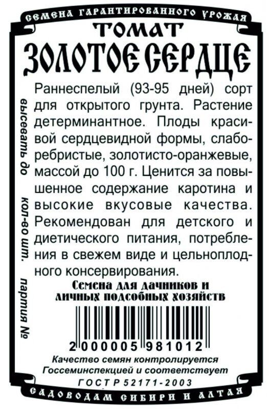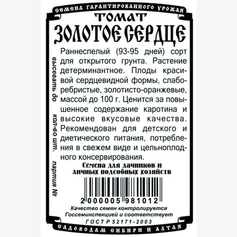 Томат Золотое сердце бп 20 шт Деметра/