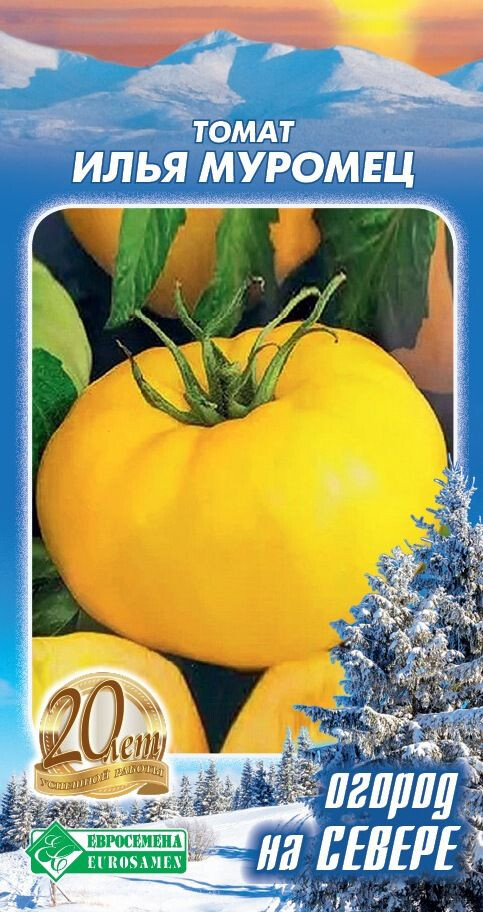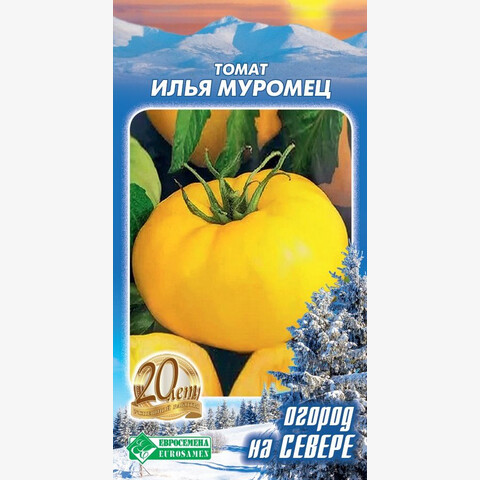 Ни у кого не вызывает сомнений, что свежие овощи - это вкусно и полезно. Тем людям, кто живет на юге или в средней полосе России не составляет особого труда в выборе семян для посева, а как же быть северянам! Навсегда распроститься с мечтой о свежих овощах со своего огорода? Ни в коем случае! Огород на Севере - серия семян, разработанная для выращивания овощей в прохладных климатических условиях, включающая раннеспелые сорта и гибриды, способные давать хороший урожай в условиях короткого лета. Илья Муромец - среднеспелый сорт томата с крупными солнечными плодами! Каждый томат массой 230 г - заряд оптимизма. Мякоть сочная и плотная, великолепного сладкого вкуса. Томатная нарезка мгновенно привлечет внимание за столом. Растение индетерминантное, высотой 1,5-2 м. Нуждается в пасынковании и подвязывании на шпалеру. Устойчивость к заболеваниям высокая.