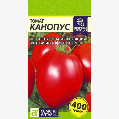 Селекция СибНИИРС. Среднеспелый (115-120 дней) сорт. Растение детерминантное, высотой 50-60 см. Плоды цилиндрические, гладкие, плотные, ярко-красные, массой 100-106 г, до 400 г. В открытом грунте можно выращивать без пасынкования, без подвязки, с формированием - в пленочных укрытиях и теплицах. Сорт генетически устойчив к вирусу табачной мозаики и заболеваниям пасленовых. Место посадки: легкие плодородные нейтральные почвы. Выращивают после моркови, капусты, свеклы, бобовых и тыквенных культур Освещение: обильное, переносит легкое затенение Предпосевная подготовка: для стимулирования прорастания перед посевом семена томата замочить на 15 минут в 1% растворе марганцовки, затем промыть и подсушить Сроки посева: среднеспелые сорта высевают за 60-70 дней до высадки (март) Посев на рассаду: высевают на слегка утрамбованный грунт, мульчируют торфом или почвенным слоем 1 см, уплотняют, обильно поливают теплой водой, накрывают пленкой и ставят в теплое (около 25°С) место. После появления всходов пленку снимают, рассаду размещают в светлом месте. В течение 5-7 суток температуру поддерживают на уровне 15-16°С, затем повышают до 20-22°С Посев в грунт: не предусмотрено для большинства регионов Пикировка/перевалка: в фазе 2 настоящих листьев рассаду пикируют. В фазе 8-9 настоящих листьев высаживают в защищенный или открытый грунт с соблюдением минимального посадочного расстояния 40х40 см Уход: детерминантные томаты выращивают с формировкой в 3-4 стебля или без формировки. В период налива плодов рекомендуется произвести калийную подкормку Сбор урожая: собирают в течение сезона по мере созревания. Недозревшие плоды в фазе молочной спелости могут дозариваться не на растении