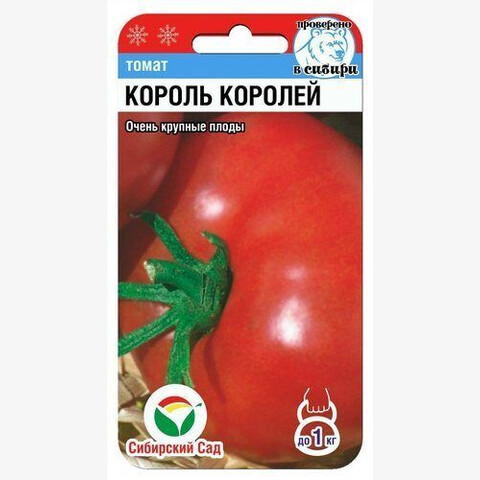 Среднепоздний сорт-гигант для защищенного грунта. Прекрасно подходит для садоводов, предпочитающих выращивать в теплицах крупноплодные сорта томатов. Растение индетерминантное, мощное, высотой 1,4-1,8 м, что позволяет полностью использовать объем теплицы. Плоды очень крупные, ярко-красные, плотные, плоско-округлой формы. Минимальная масса плода — 300 г, максимальная 1300-1500 грамм, причем, чем лучше уход за растением, тем крупнее плоды и обильнее урожай. Первая кисть закладывается над 9 листом, последующие через 3 листа. Урожайность до 5 кг с растения.