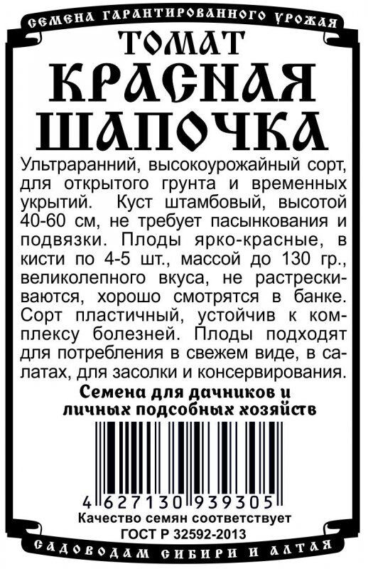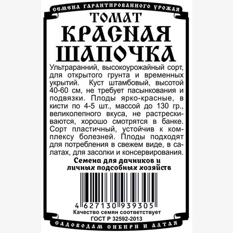 "Ультраранний, высокоурожайный сорт, для открытого грунта и временных укрытий. Куст штамбовый, высотой 40-60 см, не требует пасынкования и подвязки. Плоды ярко-красные , в кисти по 4-5 шт., массой до 130 гр., великолепного вкуса, не растрескиваются, хорошо смотрятся в банке. Сорт пластичный, устойчив к комплексу болезней. Плоды подходят для потребления в свежем виде, в салатах, для засолки и консервирования. "