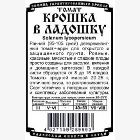 Ранний детерминантный томат-черри для открытого и защищенного грунта. Ровные, красивые, мясистые и сладкие плоды просто созданы для засолки, вяления и домашних заготовок! Урожай созревает через 95-105 дней после появления всходов. В каждой кисти образуется от 8 до 16 плодов. Томаты средней массой 20-25 г, отличного вкуса, не растрескиваются. Сорт устойчив к погодным стрессам и комплексу заболеваний культуры.