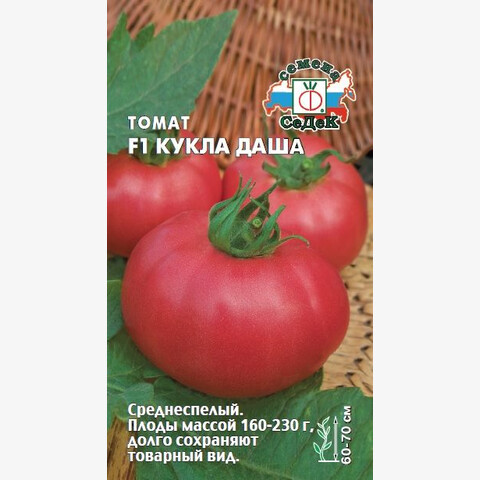 Среднеспелый (110-115 дней) гибрид для открытого грунта и пленочных укрытий. Растение детерминантное, высотой 60-70 см. В кисти формируется 5-6 плодов. Плоды округлые, крупные, розовые, плотные, с толстой кожицей, массой 160-230 г, сочные. Вкусовые качества отличные. Ценность гибрида: устойчивость к комплексу болезней, стабильно высокая урожайность, плоды ровные, долго сохраняют товарные качества на растении и при транспортировке, не растрескиваются. Рекомендуется для употребления в свежем виде, приготовления соков.