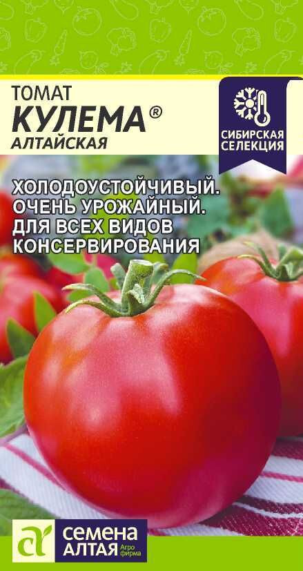 Селекция Агрофирмы Семена Алтая. Среднеспелый (110-120 дней) сорт для выращивания в теплицах и открытом грунте. Растение среднерослое детерминантное, высотой 60-95 см, соцветия закладываются сближено, часто попарно, через 1-2 листа, что способствует дружной отдаче урожая. Плоды округлой формы, гладкие, ярко-красные, мясистые, сладкие, массой 170-250 г, отдельные до 400 г. Сорт адаптирован к пониженным температурам. Отлично подходит для всех видов консервирования, а также для употребления в свежем виде. Место посадки: легкие плодородные нейтральные почвы. Выращивают после моркови, капусты, свеклы, бобовых и тыквенных культур Освещение: обильное, переносит легкое затенение Предпосевная подготовка: для стимулирования прорастания перед посевом семена томата замочить на 15 минут в 1% растворе марганцовки, затем промыть и подсушить Сроки посева: среднеспелые сорта высевают за 60-70 дней до высадки (март) Посев на рассаду: высевают на слегка утрамбованный грунт, мульчируют торфом или почвенным слоем 1 см, уплотняют, обильно поливают теплой водой, накрывают пленкой и ставят в теплое (около 25°С) место. После появления всходов пленку снимают, рассаду размещают в светлом месте. В течение 5-7 суток температуру поддерживают на уровне 15-16°С, затем повышают до 20-22°С Посев в грунт: не предусмотрено для большинства регионов Пикировка/перевалка: в фазе 2 настоящих листьев рассаду пикируют. В фазе 8-9 настоящих листьев высаживают в защищенный или открытый грунт с соблюдением минимального посадочного расстояния 40х40 см Уход: детерминантные томаты выращивают с формировкой в 3-4 стебля или без формировки. В период налива плодов рекомендуется произвести калийную подкормку Сбор урожая: собирают в течение сезона по мере созревания. Недозревшие плоды в фазе молочной спелости могут дозариваться не на растении