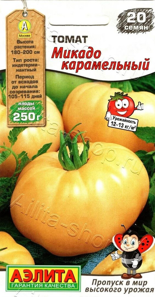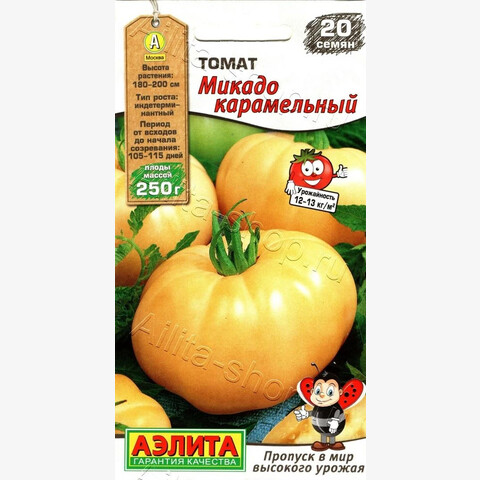 Нежный, сладко-карамельный вкус мясистых, но сочных томатов сделает этот сорт вашим любимцем! Первый урожай снимают очень рано, на 105-115 день от всходов. Куст буквально усыпан крупными, массой 200-250 г плодами и смотрится весьма оригинально. Нормируя число завязей в кисти, можно вырастить гигантов массой 400 г и более. Посадите их на хорошо освещенном месте: чем больше солнца, тем слаще получатся томаты. Урожайность отменная: 12-13 кг/м2.