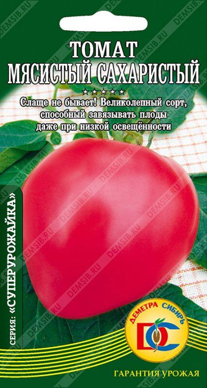 Прекрасный сорт для защищенного грунта. Растение высокорослое. Плоды малосеменные, сердцевидной формы, с гладкой блестящей поверхностью, ярко-малинового цвета, в первой кисти достигают 700-800 г, в последующих 300-400 г. Мякоть сладкая сахаристая, очень вкусная. Сорт способен завязывать плоды при недостаточной освещенности. Рекомендуется для приготовления салатов, соков, зимних заготовок
