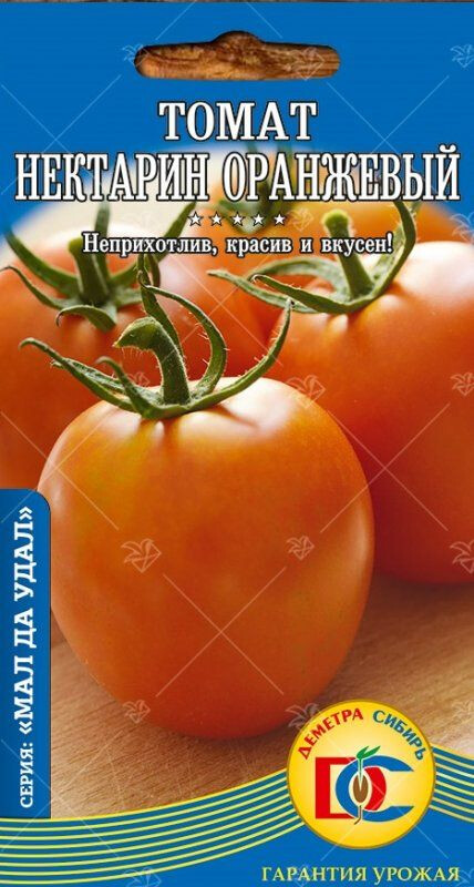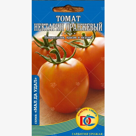 Детерминантный среднеранний (95-103 дня) сорт. Растения крепкое, прямостоячее, высота до 60 см (в теплице до 80 см), иногда требует подвязки и пасынкования. Плоды округлой формы, оранжевого цвета, на кожице может быть легкий пушок, масса 60-80 г. Отличный сладкий вкус! Используются для консервации и засолки целыми, в салатах, различных блюдах, а также для приготовления соков и паст. КС: Неприхотлив, красив и вкусен!