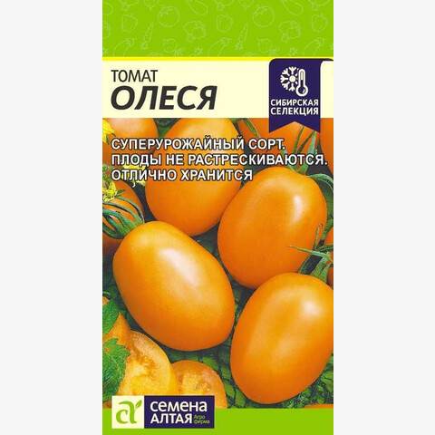 Селекция СибНИИРС. Позднеспелый сорт. Растение индетерминантное. Плоды эллиптические, гладкие, мясистые, малосемянные, оранжевого цвета, массой 90-114 г. Для использования в свежем виде и для засолки. Место посадки: легкие плодородные нейтральные почвы. Выращивают после моркови, капусты, свеклы, бобовых и тыквенных культур Освещение: обильное, переносит легкое затенение Предпосевная подготовка: для стимулирования прорастания перед посевом семена томата замочить на 15 минут в 1% растворе марганцовки, затем промыть и подсушить Сроки посева: позднеспелые сорта высевают за 70-80 дней до высадки (февраль-март) Посев на рассаду: высевают на слегка утрамбованный грунт, мульчируют торфом или почвенным слоем 1 см, уплотняют, обильно поливают теплой водой, накрывают пленкой и ставят в теплое (около 25°С) место. После появления всходов пленку снимают, рассаду размещают в светлом месте. В течение 5-7 суток температуру поддерживают на уровне 15-16°С, затем повышают до 20-22°С Посев в грунт: не предусмотрено для большинства регионов Пикировка/перевалка: в фазе 1-2 настоящих листьев рассаду пикируют. В фазе 9-10 настоящих листьев высаживают в защищенный или открытый грунт с соблюдением посадочного расстояния 40х40 см Уход: индетерминантные томаты формируют в 1-2 стебля, удаляя пасынки. При достижении растениями верха теплицы или формировании 6-7 кистей основной стебель прищипывается. В период налива плодов рекомендуется произвести калийную подкормку Сбор урожая: собирают в течение сезона по мере созревания. Недозревшие плоды в фазе бланжевой и молочной спелости могут дозариваться не на растении
