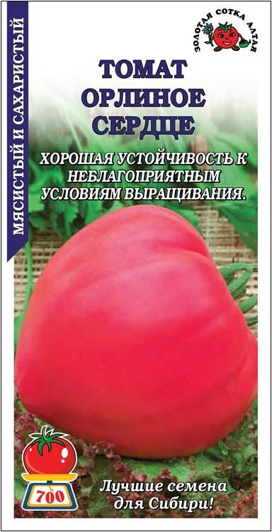 Среднеспелый сорт для выращивания в открытом грунте и под пленочными укрытиями. Растение детерминантное, требует подвязки и формирования. Плоды сердцевидной формы, слаборебристые, малиновой окраски, мясистые, крупные, массой 177-400 г (до 600-700 г), сахаристые, великолепного вкуса. Сорт прекрасно подходит для непосредственного потребления, приготовления салатов и соков, консервирования и переработки. Устойчив к неблагоприятным условиям выращивания.