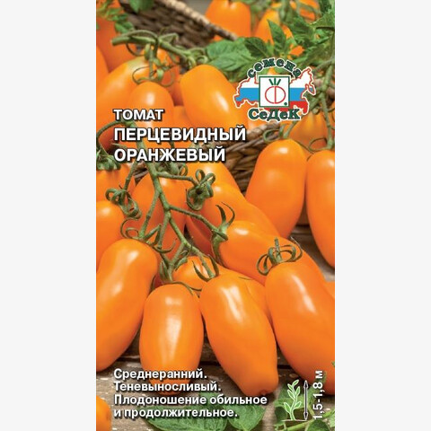 Среднеранний (105-110 дней) сорт для пленочных укрытий и теплиц. Растение индетерминантное, высотой 1,5-1,8 м, формируется в один или два стебля. Плоды крупные, перцевидные, незрелые – светло-зеленые, зрелые - оранжевые, массой 135-150 г, мясистые, плотные, с толстой кожицей, отличного вкуса. Урожайность 7-8кг/м2. Ценность сорта: теневыносливость, обильное и продолжительное плодоношение, высокое содержание сухого вещества, витамина С, каротина. Рекомендуется для свежего употребления, цельноплодного консервирования, засола.