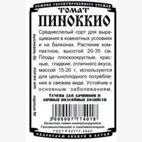 Каждая хозяйка хотела бы иметь свежую зелень в любое время года. Имея дачу или собственный огород можно баловать семью витаминными салатами на протяжении весенне-летнего периода. В зимнее же время нехватка витаминов и питательных веществ чувствуется особенно остро, поэтому все большей популярностью пользуются домашние мини-огороды на подоконниках и лоджиях, где любители земледелия умудряются вырастить почти весь дачный ассортимент овощей. Огород круглый год - модный тренд, занятие приятное и полезное, всегда под рукой пряная зелень к столу — и не нужно задумываться, как сохранить ее в свежем виде. Эта неторопливая работа по уходу за мини-огородом успокаивает, отвлекает от суеты и хлопот, к тому же растения создают особый микроклимат в помещениях, увлажняя сухой воздух и очищая его. Томат Пиноккио- среднеспелый сорт салатного назначения для выращивания в горшках в комнатных условиях, растение штамбовое, высотой 20-35 см, плоды красного цвета, массой 15-20 г, отличного вкуса, урожайность товарных плодв1-1,5 кг с куста.