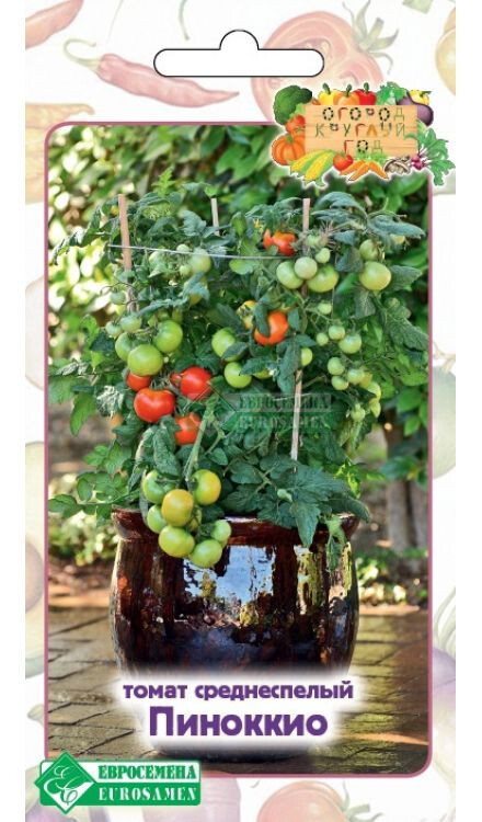 Каждая хозяйка хотела бы иметь свежую зелень в любое время года. Имея дачу или собственный огород можно баловать семью витаминными салатами на протяжении весенне-летнего периода. В зимнее же время нехватка витаминов и питательных веществ чувствуется особенно остро, поэтому все большей популярностью пользуются домашние мини-огороды на подоконниках и лоджиях, где любители земледелия умудряются вырастить почти весь дачный ассортимент овощей. Огород круглый год - модный тренд, занятие приятное и полезное, всегда под рукой пряная зелень к столу — и не нужно задумываться, как сохранить ее в свежем виде. Эта неторопливая работа по уходу за мини-огородом успокаивает, отвлекает от суеты и хлопот, к тому же растения создают особый микроклимат в помещениях, увлажняя сухой воздух и очищая его. Томат Пиноккио- среднеспелый сорт салатного назначения для выращивания в горшках в комнатных условиях, растение штамбовое, высотой 20-35 см, плоды красного цвета, массой 15-20 г, отличного вкуса, урожайность товарных плодв1-1,5 кг с куста.