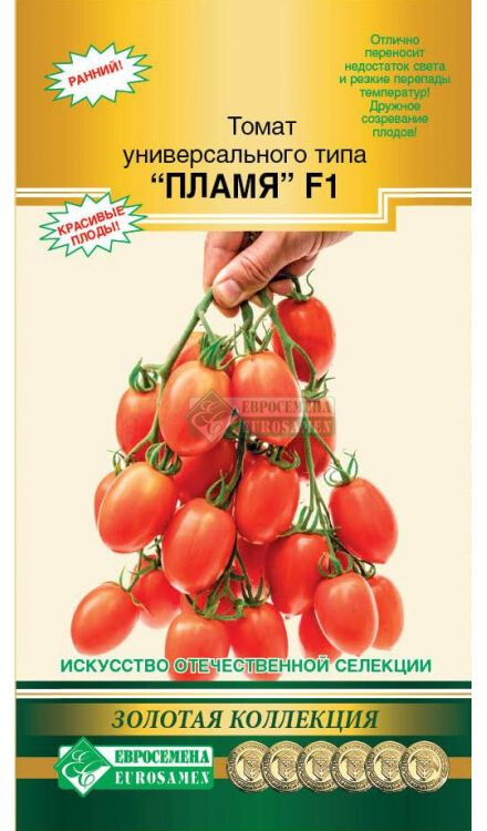 Гибрид раннеспелый, детерминантный. От всходов до сбора первого урожая 85-90 дней. Первое соцветие закладывается над 6 листом, последующие - через 2 листа. Куст штамбовой формы, компактный, высотой 0,8-1,2 м. Плоды сливовидной формы, оранжево-алого цвета массой 60-80 г. Вкус плодов хороший, сочный, душистый, сладкий, приятной консистенции. В технической спелости плоды хорошо идут в засолку, а в биологической зрелости плоды хороши в свежем виде и для приготовления соков. Гибрид отлично переносит недостаток света и резкие перепады температур. Благодаря своей раннеспелости, дружному созреванию плодов, успевает избежать фитофторы. Гибрид устойчив к вертициллёзному увяданию, фузариозу и альтернариозу. Плоды томатов богаты витаминами, содержат фолиевую кислоту, каротин, провитамин Д и оказывают положительное воздействие на организм. Плотность посадки 5 растений/м2. Урожайность 15 кг/м2.
