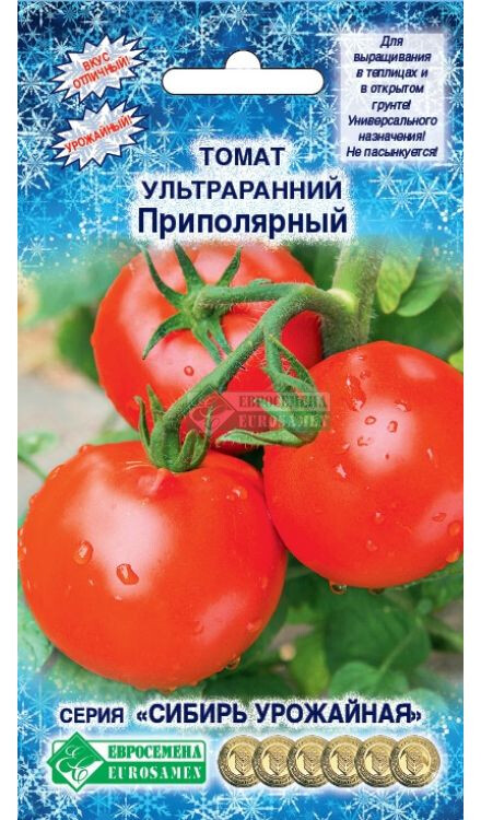 Сегодня сложно найти рецепт первых и вторых блюд, в которые не добавлялись бы томаты. Мы добавляем свежие, протёртые или вяленые помидоры в супы — для насыщенности, в гарниры кладём их, чтобы сделать вкус более многогранным и интересным, а к мясу — чтобы оно стало более сочным и нежным. Помидоры используют даже в выпечке и десертах. Помидоры — важный для человека с биохимической точки зрения продукт. Приполярный- самый скороспелый и урожайный сорт томата. Кусты детерминантного типа, низкорослые, с дружной отдачей урожая. Плоды созревают в течение 85-95 дней после всходов. Помидоры могут быть круглыми или приплюснутыми, кожица гладкая, цвет плодов красный. Размер томата средний, ближе к небольшому – 50-80 г. Вкусовые качества превосходные. Рекомендуется для универсального применения. Не нуждается в пасынковании.