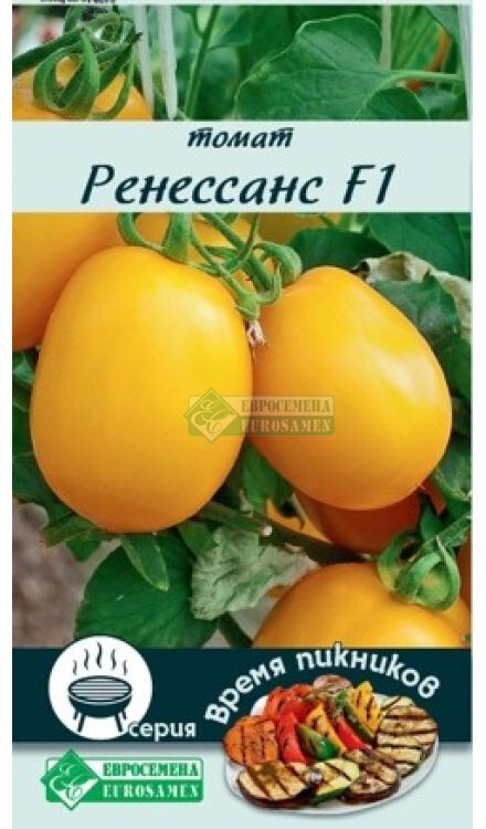 Овощи на гриле, а также овощной шашлык — здоровая альтернатива блюдам из жареных продуктов, их можно подать в качестве закуски или гарнира, из них получается прекрасный салат — теплый или холодный. К тому же запекать овощи можно и дома, и на природе. Овощная серия Время Пикников разработана специально для осуществления этих целей и включает сорта и гибриды овощей с малым количеством влаги и семечек. К таким овощам хорошо подать кусочки хлеба, поджаренного на гриле. Приготовление занимает считанные минуты, а удовольствия на целый день! Ренессанс- раннеспелый(95-100 дней) детерминантный гибрид с выровненными плодами сливовидной формы, желтого цвета, массой 70-110. В кистях формируется по 5-8 двухкамерных плодов с высоким содержанием сухого вещества. Рекомендуется для защищенного и открытого грунта, для консервирования, вяления, всех видов консервирования.