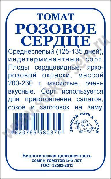 Среднеспелый высокоурожай- ный сорт, хорошо завязываю- щий плоды при неблагопри- ятных условиях. От всходов до начала плодоношения 125-135 дней. Растение индетерминант- ное, требует подвязки и форми- рования. Плоды сердцевидной формы, красивой ярко-розовой окраски, массой 200-230 г, мясистые и очень вкусные. Сорт прекрасно подходит для непосредственного потребле- ния, приготовления салатов и соков, консер- вирования и переработки.